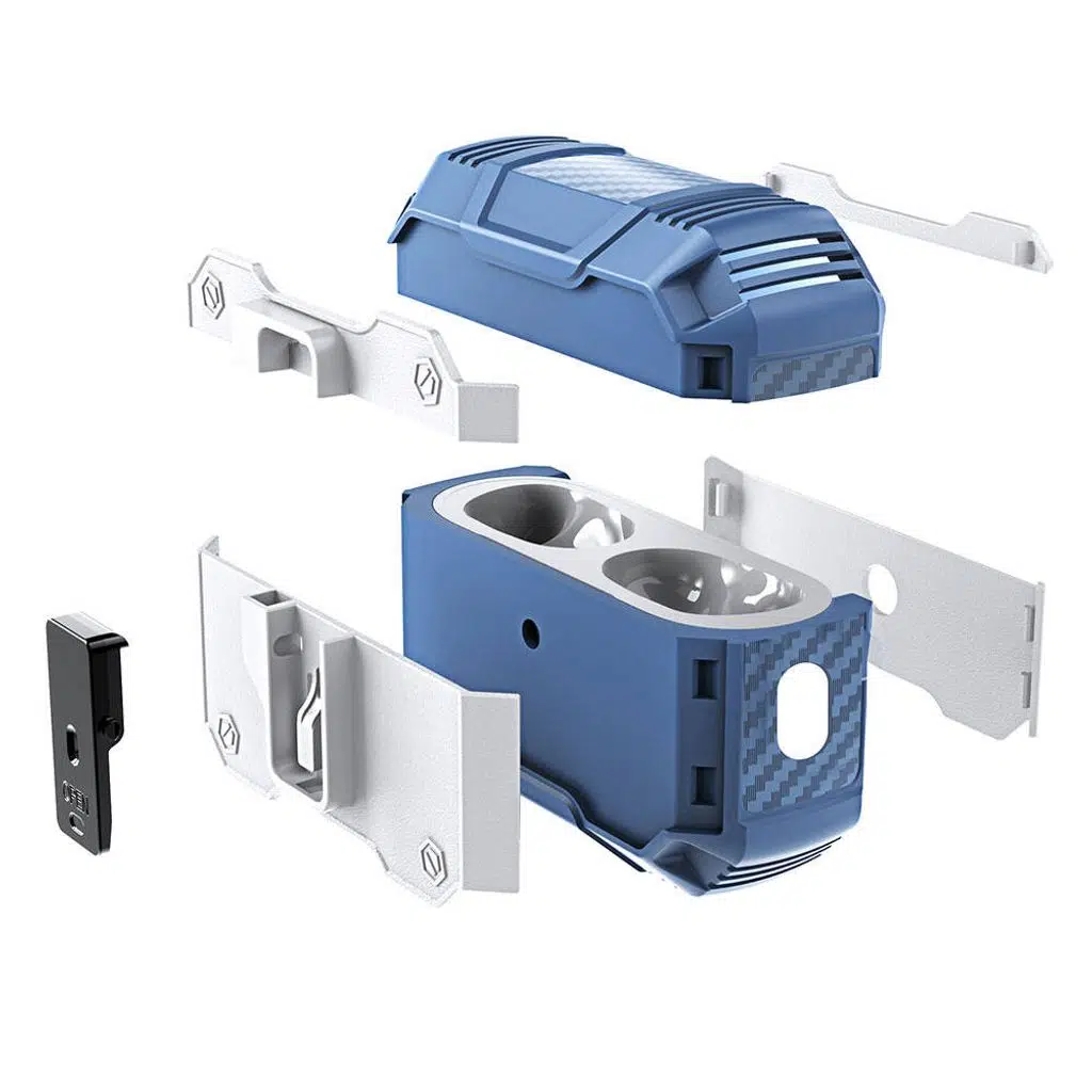 Üst kapağın iç kısmında yer alan mavi etiket sayesinde cihazınız çift taraflı olarak tutunur.