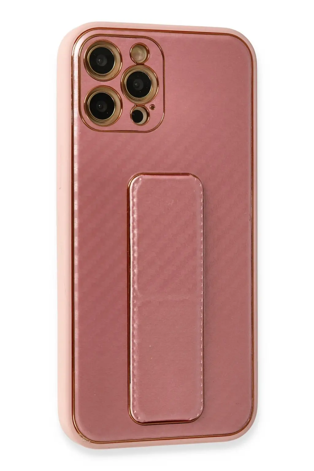 Lopard İphone 12 Pro Kılıf Coco Karbon Standlı Kapak - Pembe