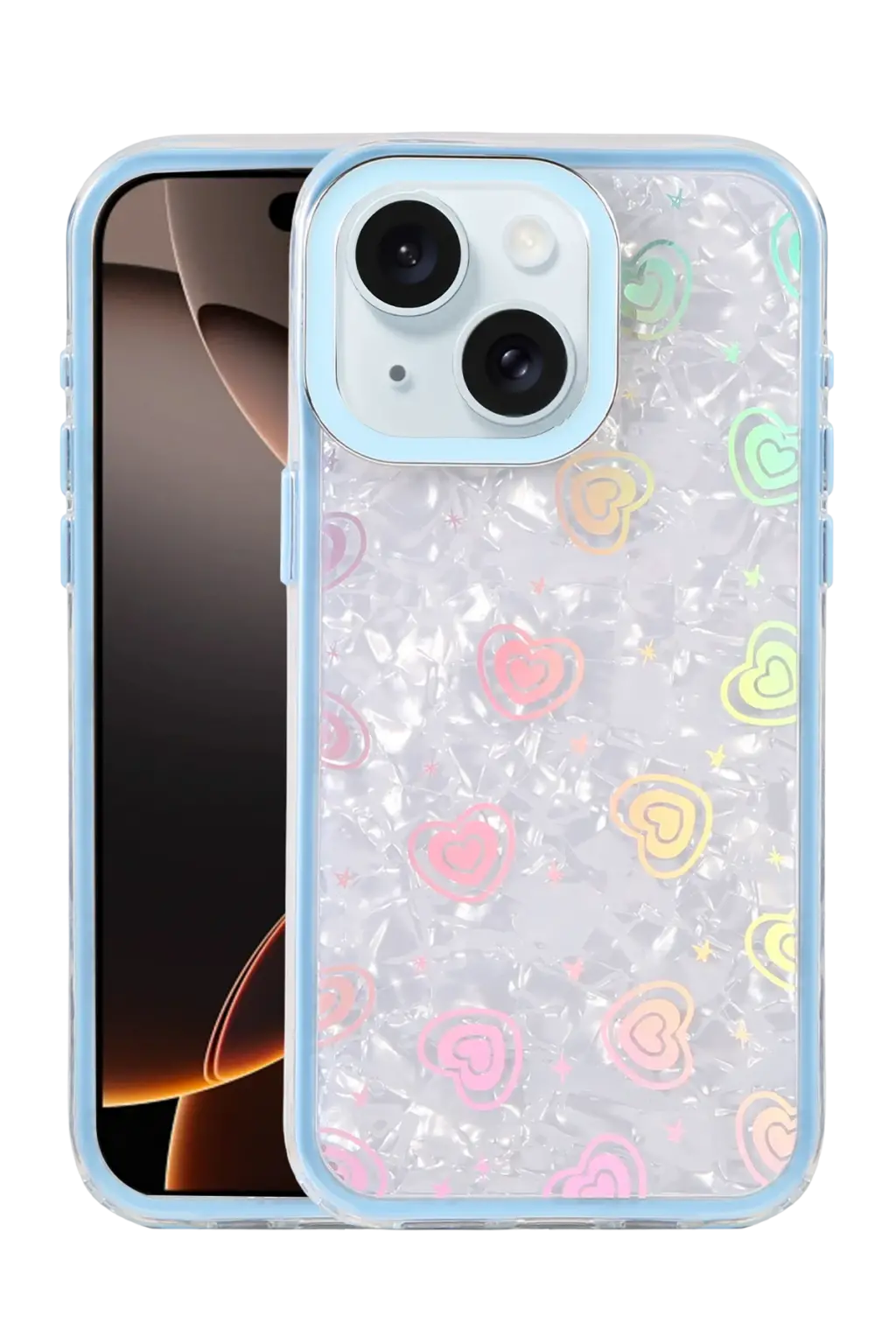✅ Kristal şeffaf tasarımı ve renkli kalp desenleriyle şık bir görünüm sunar.