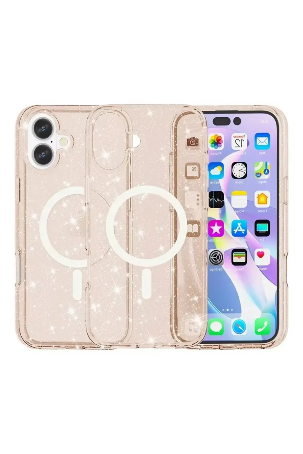Glow MagSafe Kapak, telefonunuzu her açıdan öne çıkaran parlak ve şık bir tasarıma sahiptir. Simli arka planı, ışık altında parlayarak cihazınıza göz alıcı bir görünüm kazandırır.