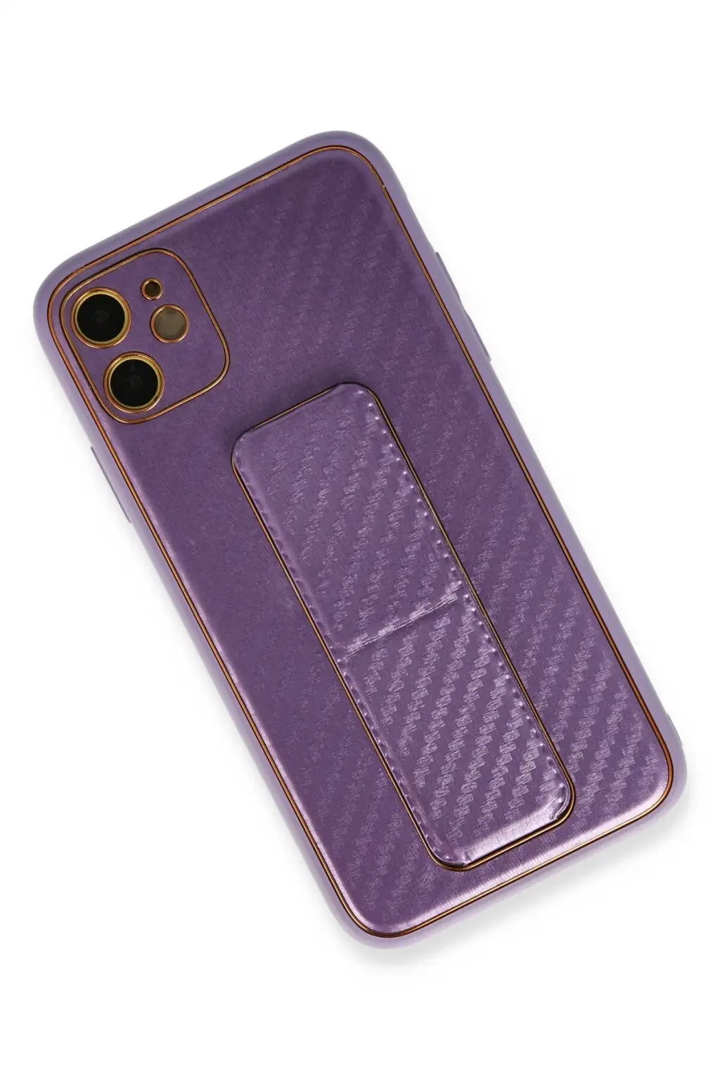 Lopard İphone 12 Kılıf Coco Karbon Standlı Kapak - Mor