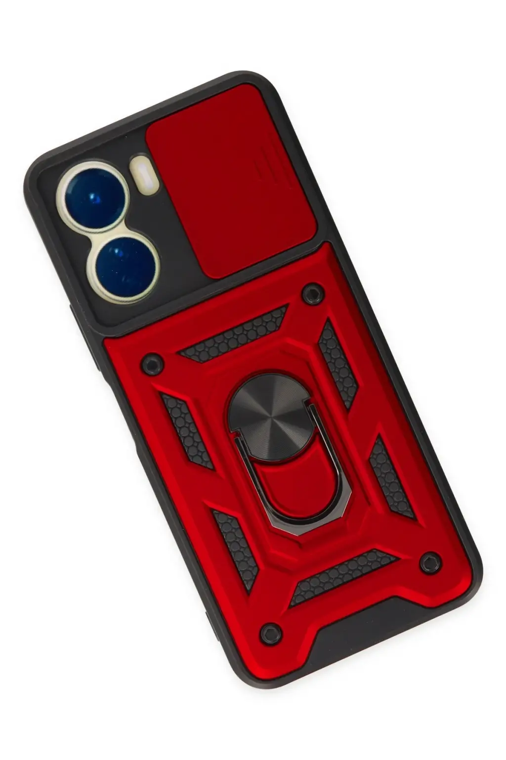 Lopard Vivo Y16 Kılıf Pars Lens Yüzüklü Silikon - Kırmızı