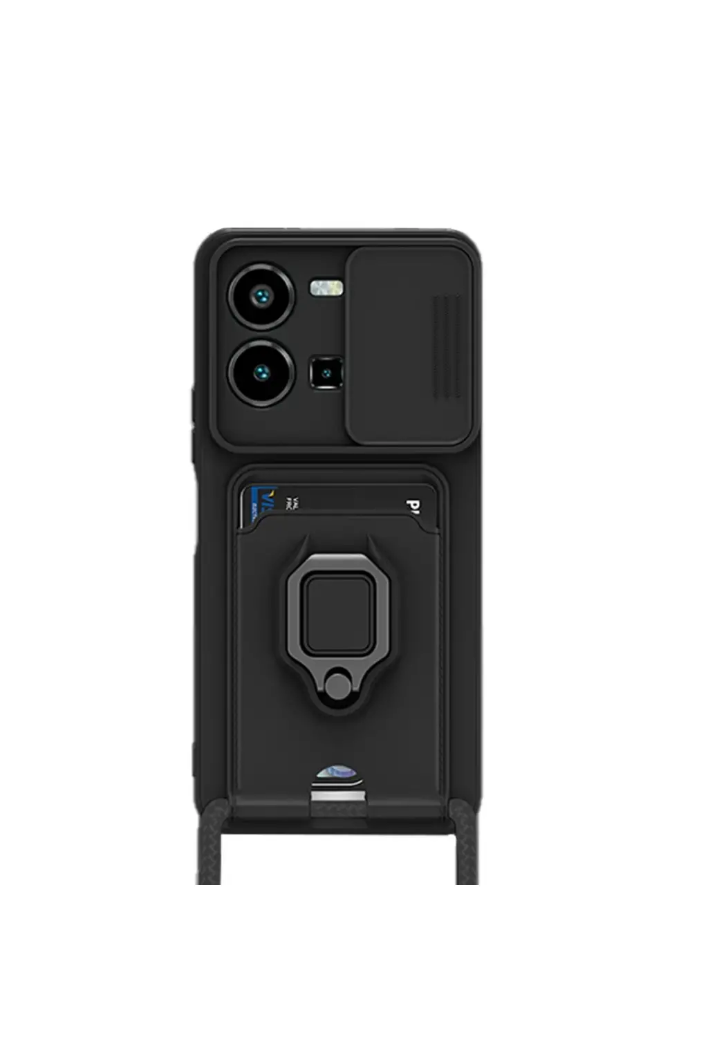 Lopard Vivo Y35 Kılıf Zuma Kartvizitli Yüzüklü Silikon - Siyah
