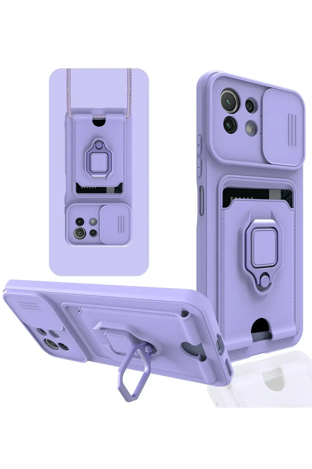Lopard Xiaomi Mi 11 Lite Kılıf Zuma Kartvizitli Yüzüklü Silikon - Lila