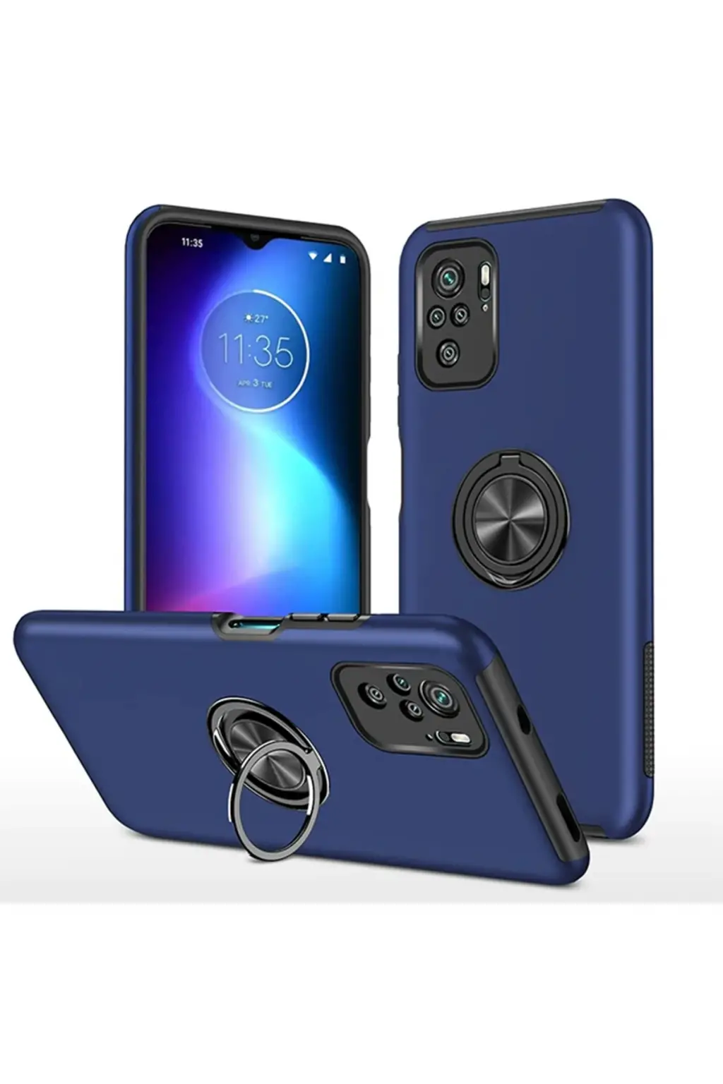 Lopard Xiaomi Poco F3 Kılıf Elit Yüzüklü Kapak - Lacivert
