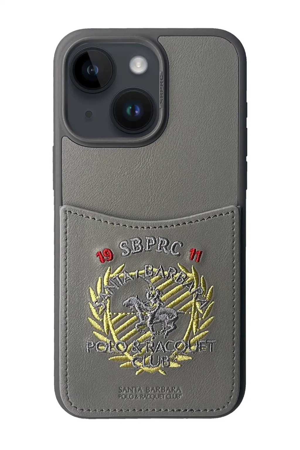 Santa Barbara Polo Racquet Club İphone 15 Abner İçi Süet Nakış Desenli Kartvizitli Kılıf - Titan Gri