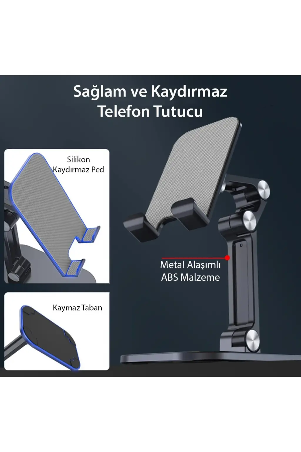 Standın alt kısmında bulunan kaymaz pedler, masa yüzeyinde kaymayı önler ve güvenli bir kullanım sağlar. Ayrıca, cihazınızın çizilmesini önleyen yumuşak pedler, cihazınızı güvenli bir şekilde destekler.