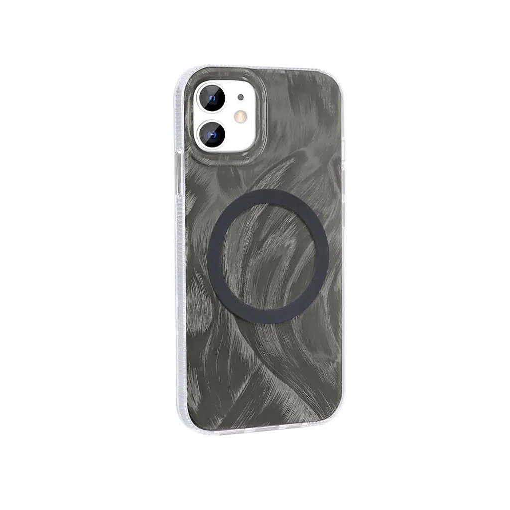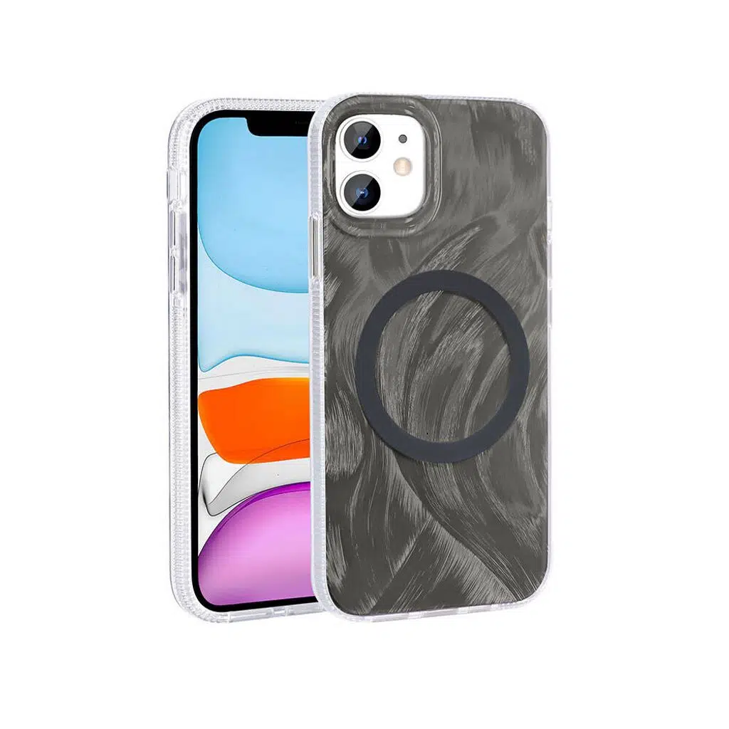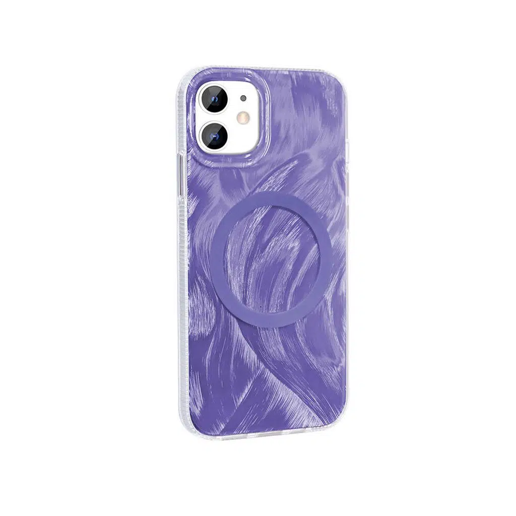 iPhone 11 Kılıf M-safe Şarj Özellikli Fırça Boya Desenli Palet Kapak