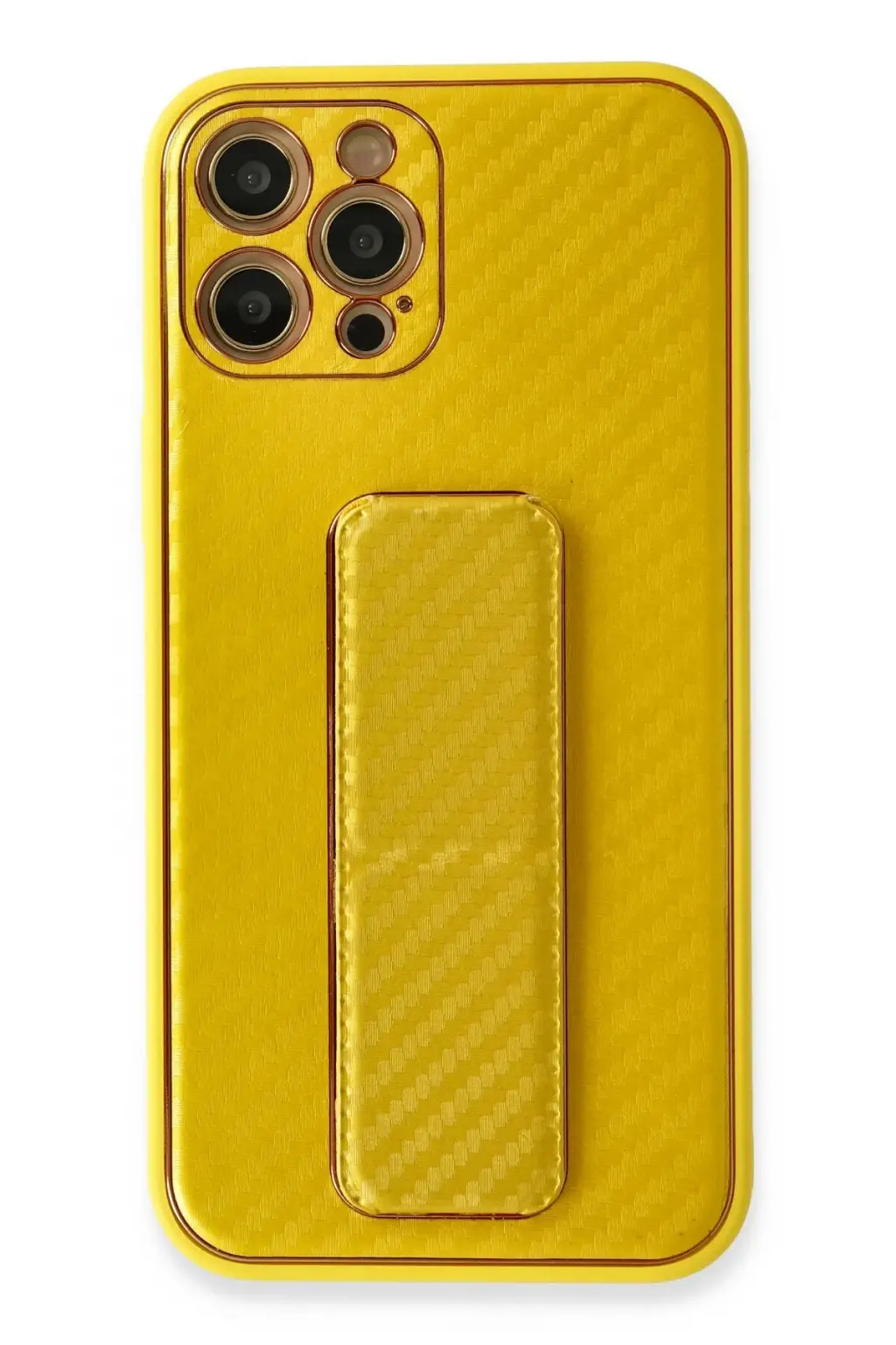 Lopard İphone 12 Pro Max Kılıf Coco Karbon Standlı Kapak - Sarı