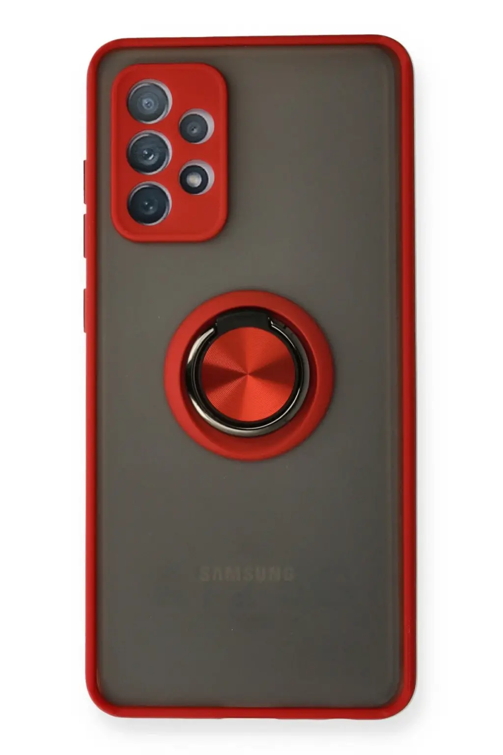 Lopard Samsung Galaxy A72 Kılıf Montreal Yüzüklü Silikon Kapak - Kırmızı