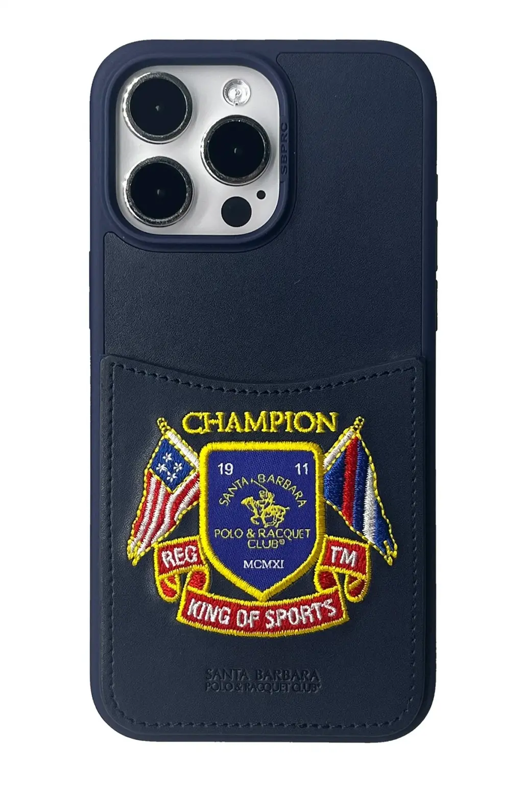 Santa Barbara Polo Racquet Club İphone 15 Pro Abner İçi Süet Nakış Desenli Kartvizitli Kılıf - Lacivert