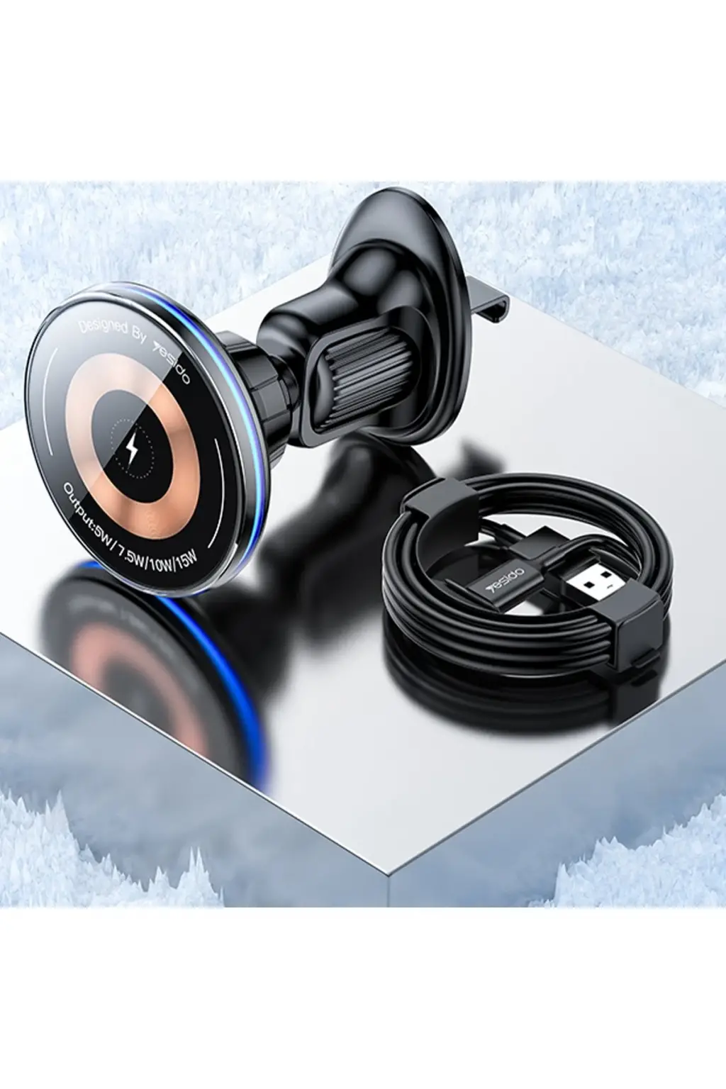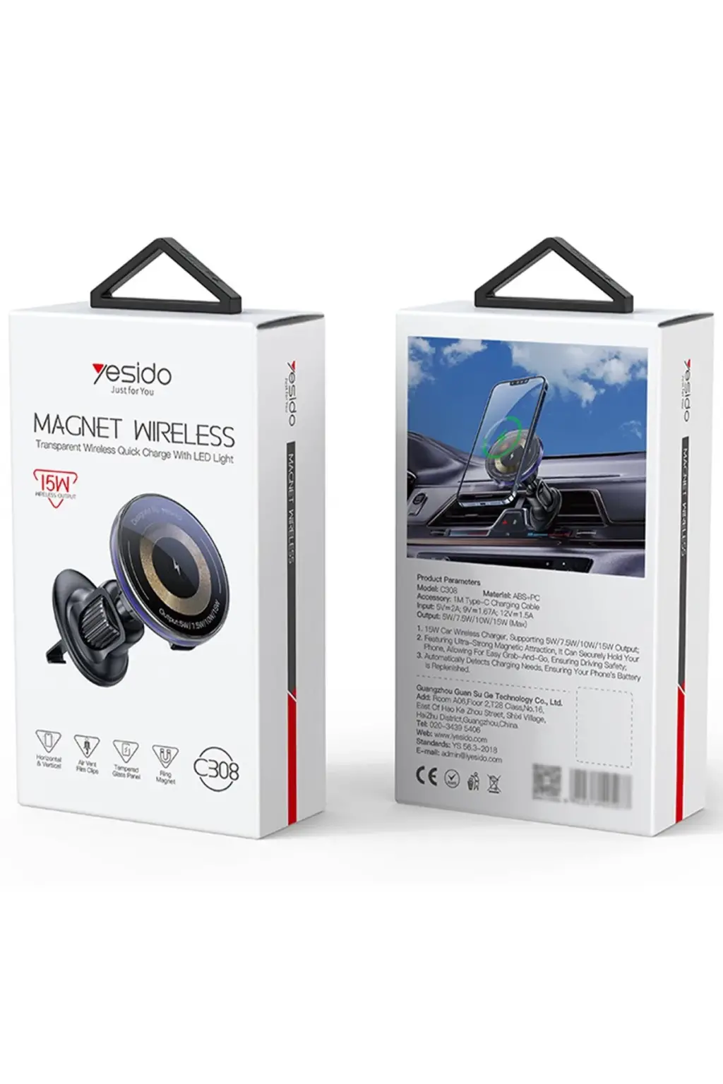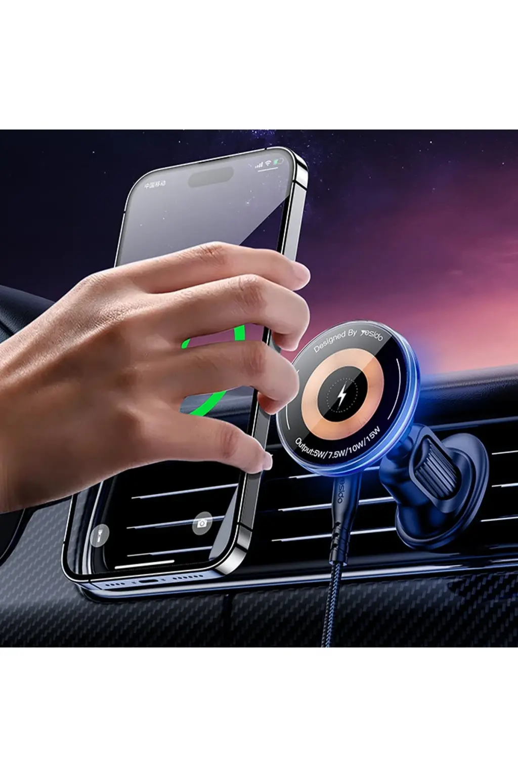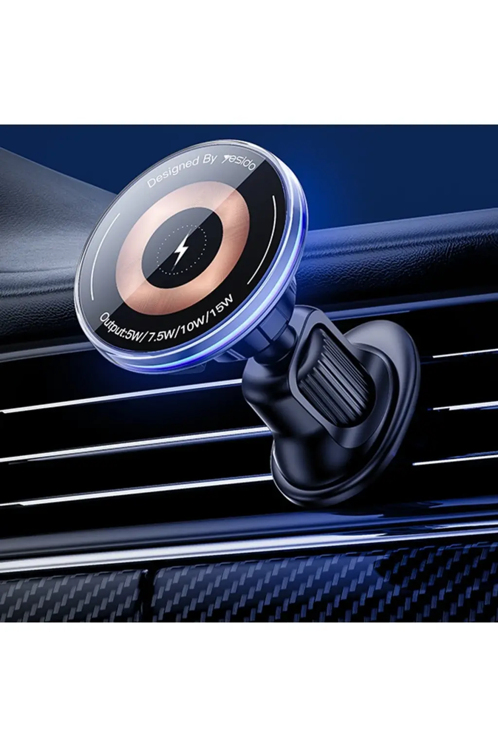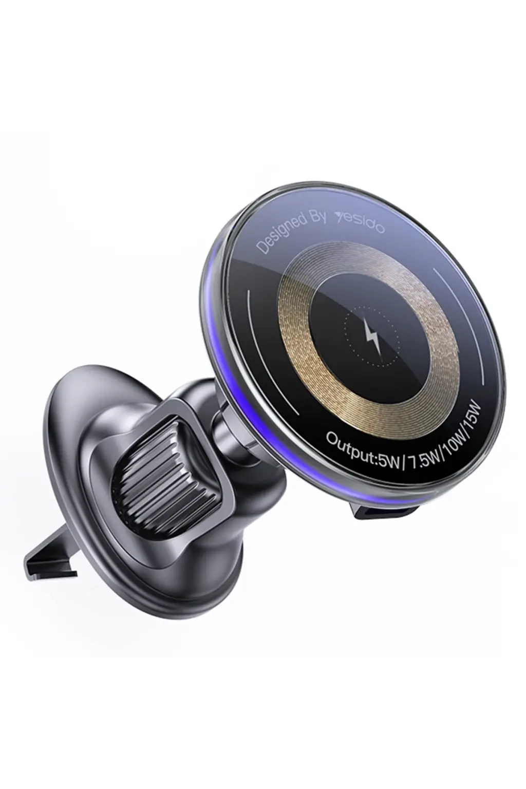 Yesido C308 Izgara Klipsli Cam Yüzeyli 15W Kablosuz Şarjlı Magsafe Araç Tutucu