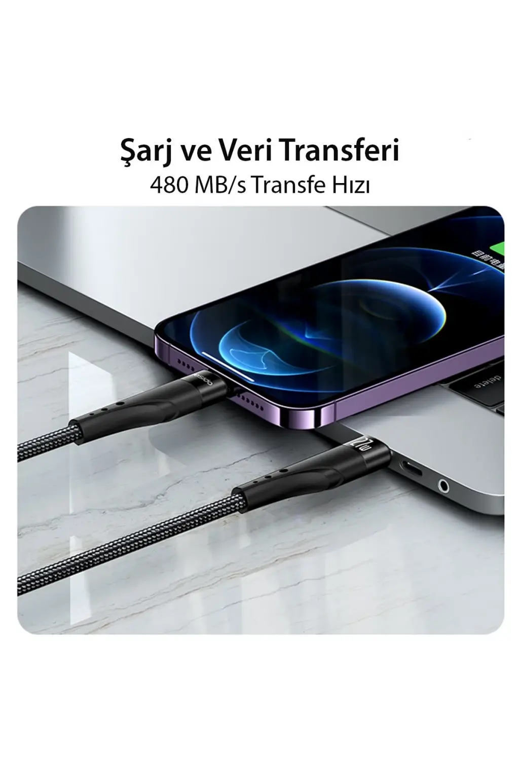 Lanex Ls42cl 1m 30w Hasırlı Type-c To Lightning Pd Hızlı Şarj Kablosu - Siyah
