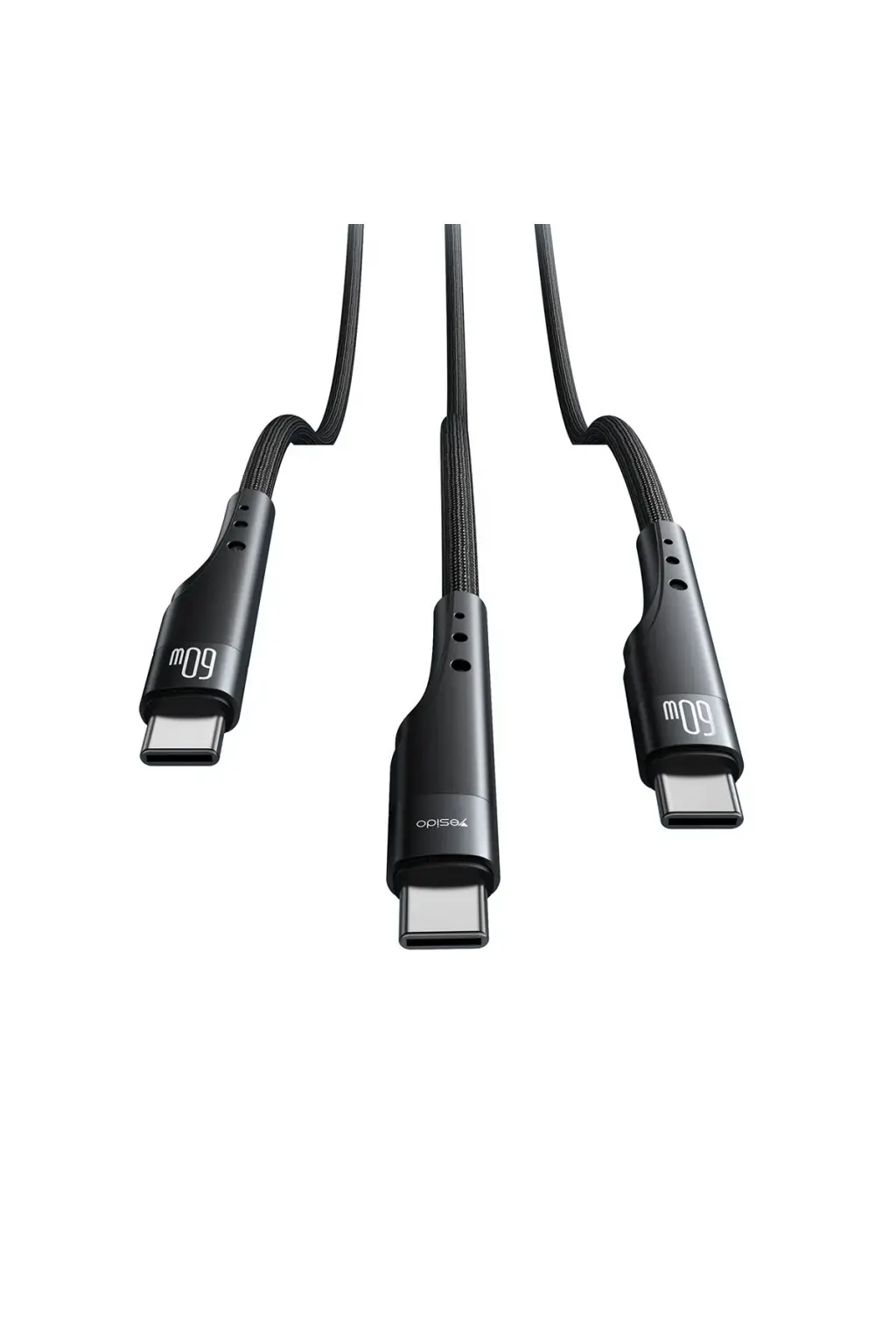 Yesido Ca165c 1.2m 2in1 Bir Ucu Usb Ve Type-c To Type-c Pd Hızlı Şarj Kablosu - Siyah
