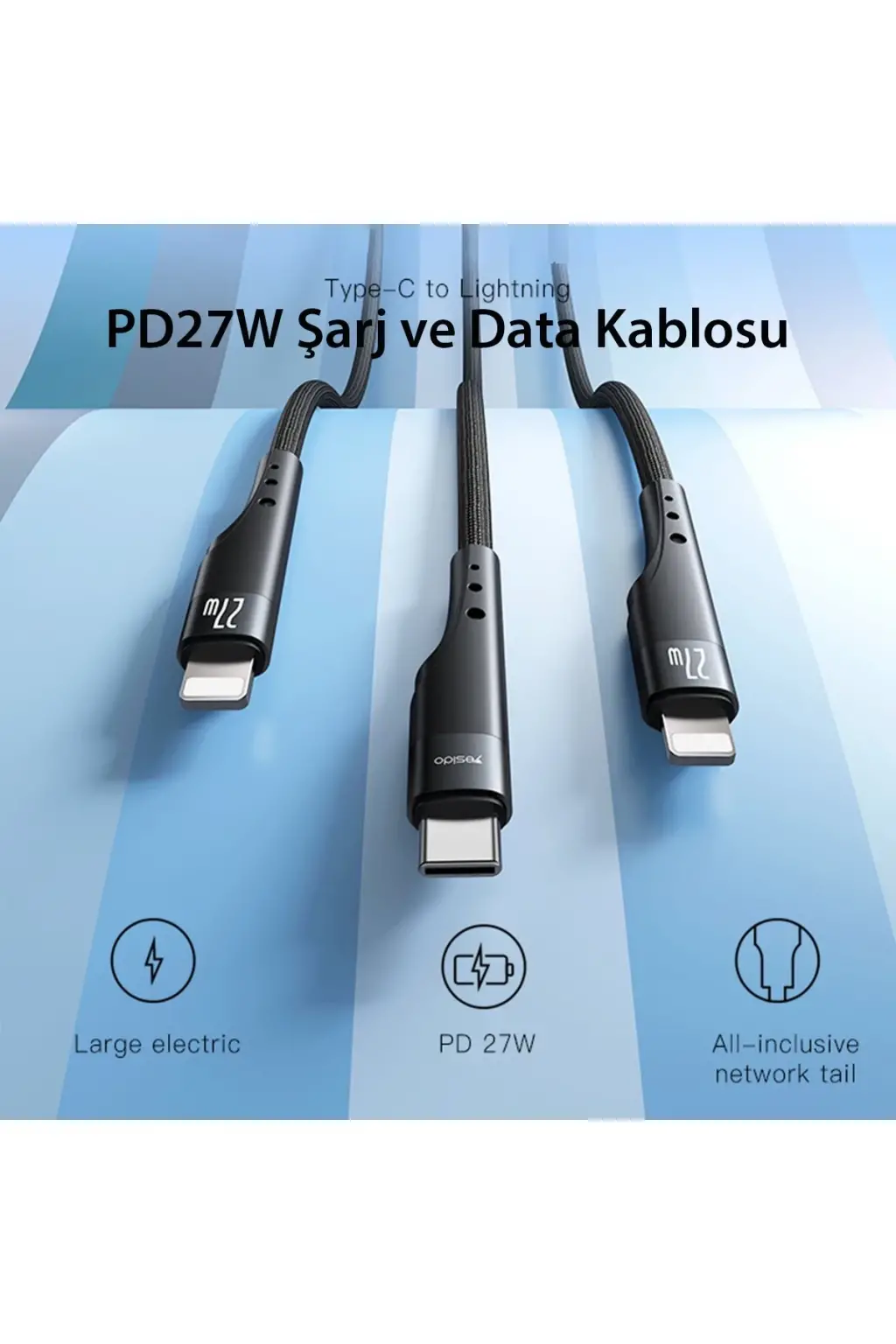 Yesido Ca169 1.2m 27w Type-c To Lightning Pd Hızlı Şarj Kablosu - Mavi