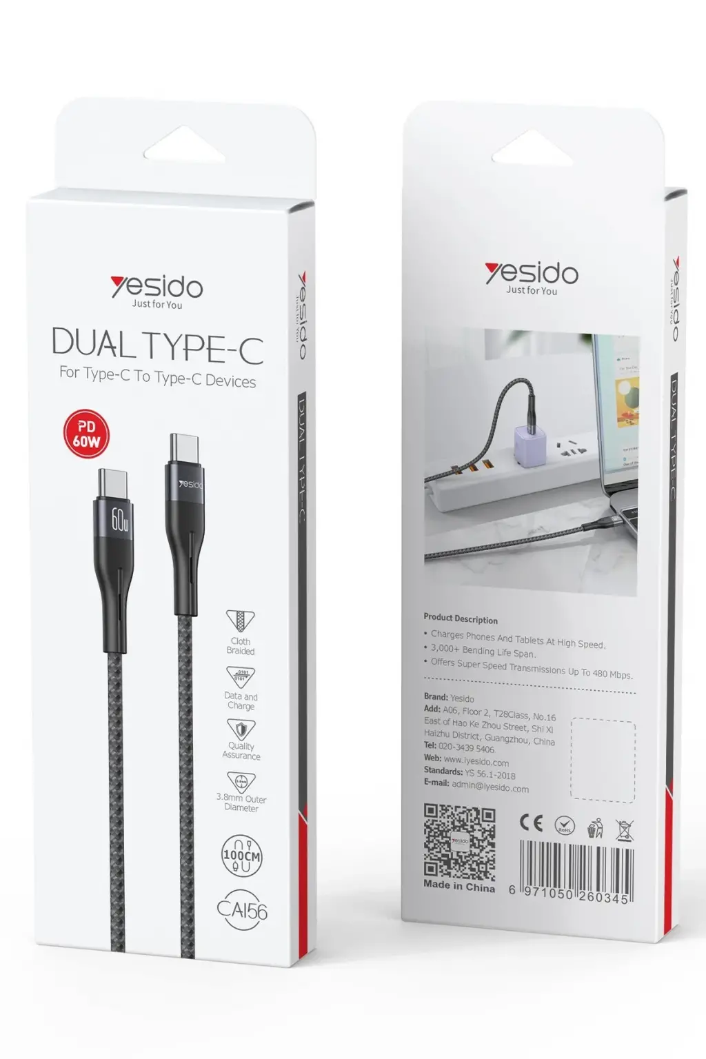 Yesido CA156, güçlü 60W PD hızlı şarj ve dayanıklı pamuk örgülü tasarımı ile şarj ve veri aktarımı ihtiyaçlarınızı en iyi şekilde karşılar. Hem evde hem de seyahatlerde güvenilir bir şarj çözümü sunar.
