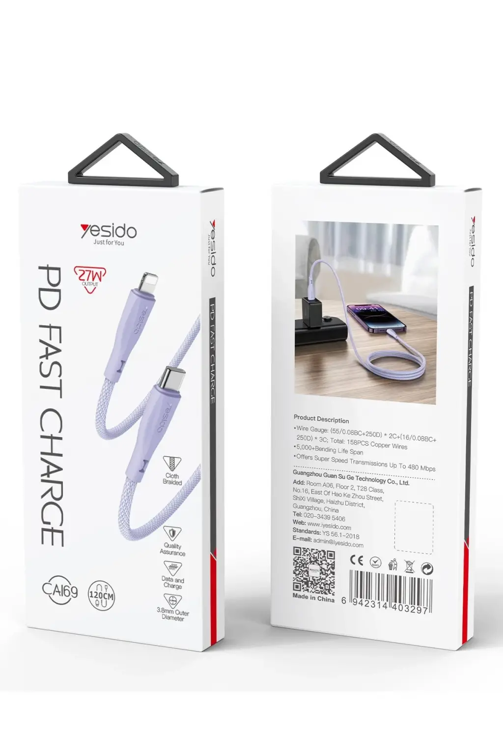 Yesido CA169 1.2M 27W Type-C to Lightning PD Hızlı Şarj Kablosu