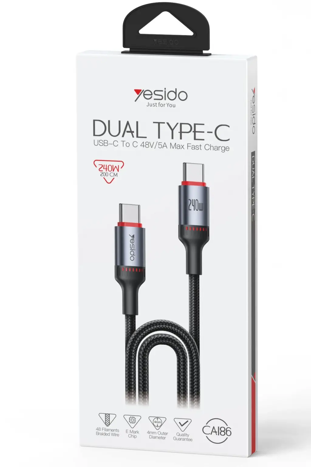Yesido CA186 2M 240W Type-C to Type-C PD Hızlı Şarj Kablosu