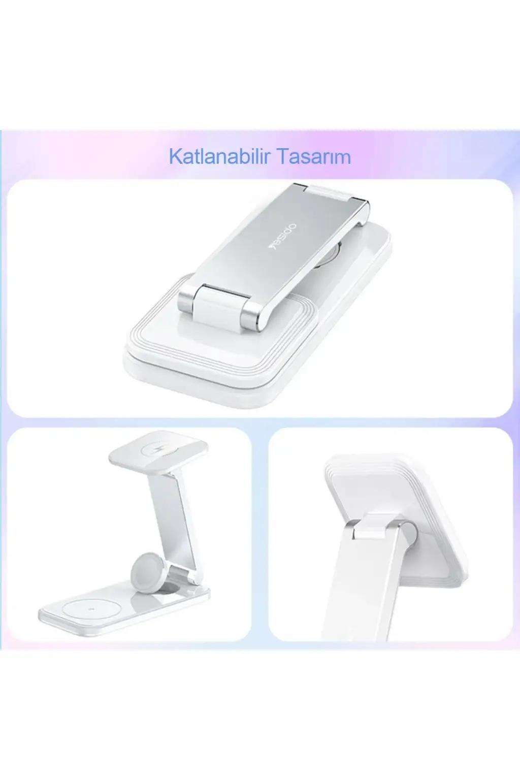 Yesido DS17, aynı anda üç farklı cihazı şarj edebilme yeteneğine sahiptir. Bu şarj standı, kablosuz şarj destekli akıllı telefonlar, Apple Watch ve kablosuz kulaklıklar gibi cihazlarınızı tek bir yerden şarj etmenizi sağlar. Bu özellik, cihazlarınızı düzenli tutarken, şarj işlemlerini de hızlı ve verimli hale getirir.