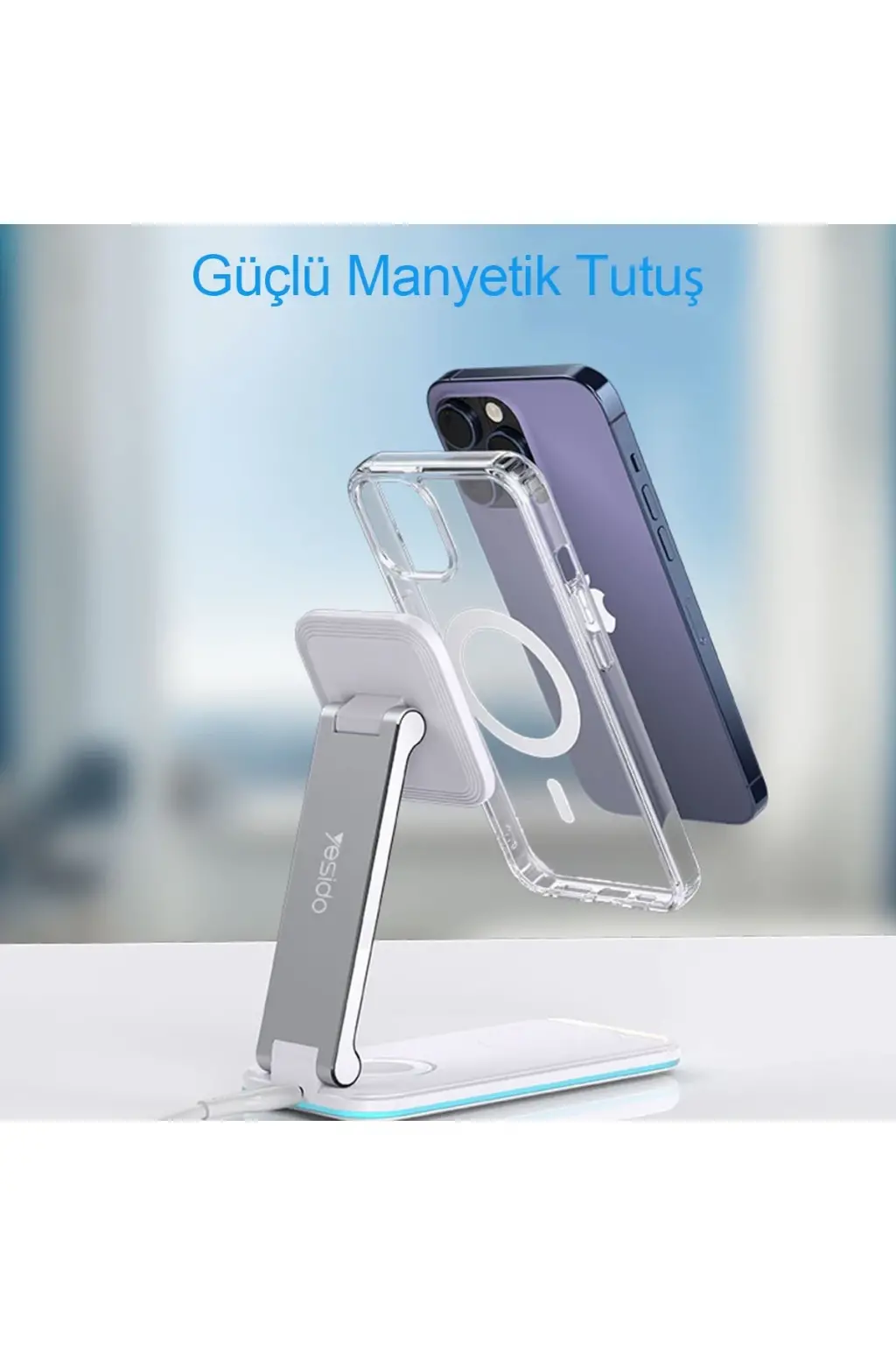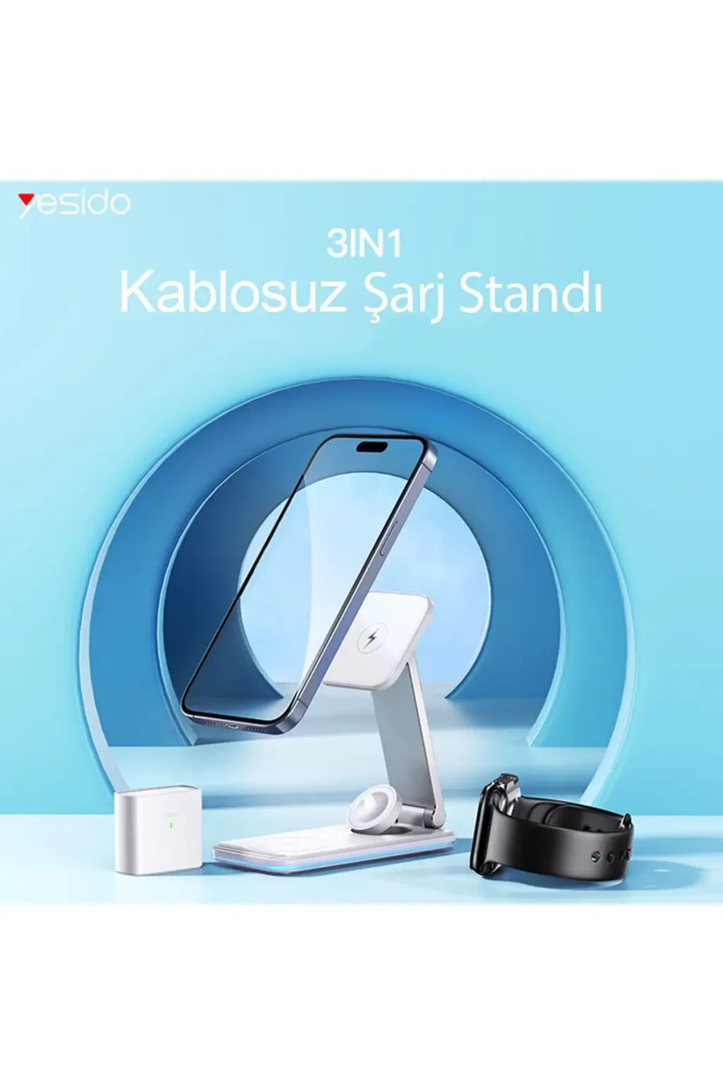 Yesido DS17 3in1 Led Işıklı Masaüstü Kablosuz Şarj Standı