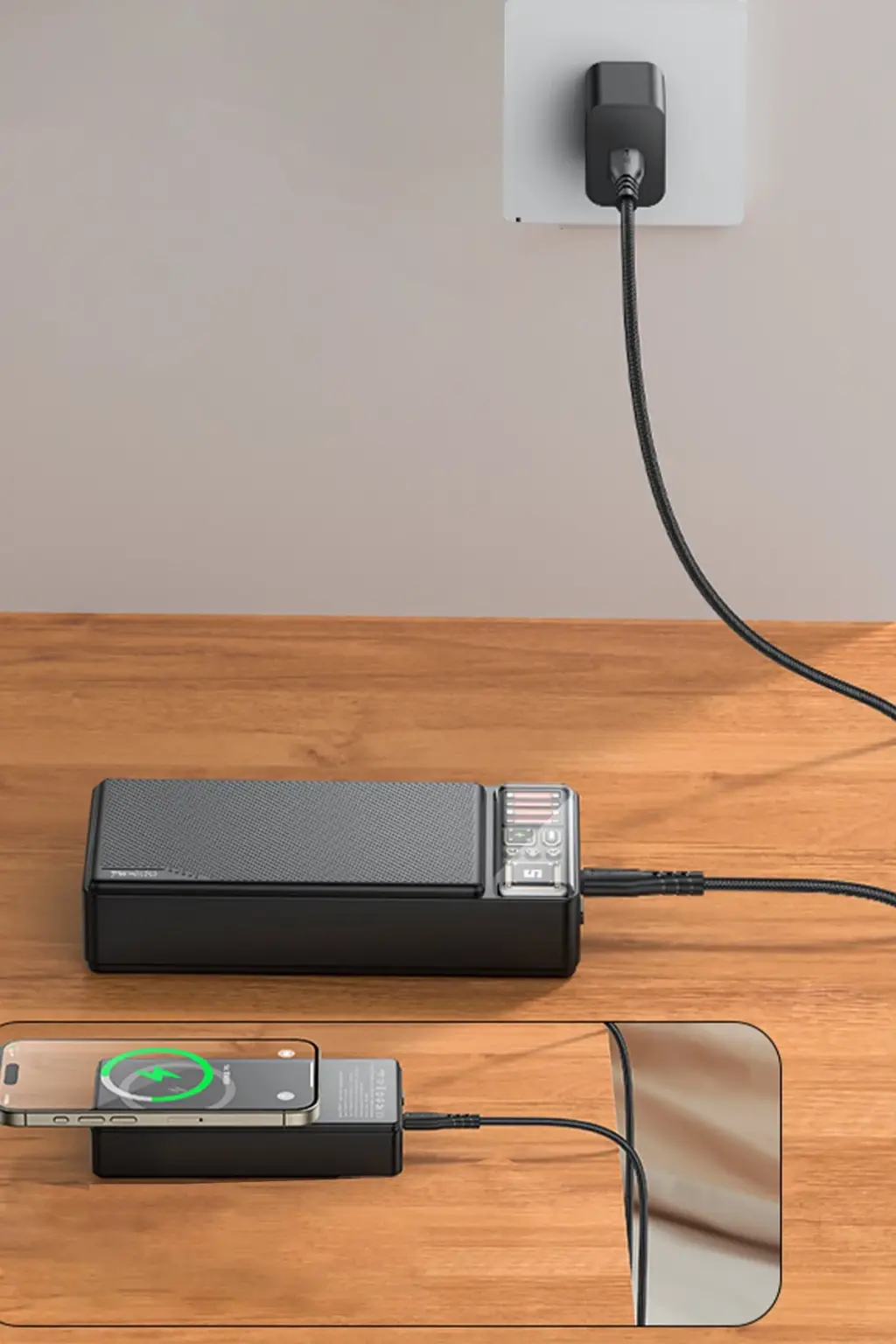 USB3.0 portu ile cihazlarınızı hızlı bir şekilde şarj edebilirsiniz. 22.5W güç çıkışı, özellikle büyük bataryalı cihazlar için ideal bir şarj hızını sağlar.Type-C portu, hem giriş hem de çıkış olarak kullanılabilir ve 20W hızlı şarj desteği sunar. Bu port, modern akıllı telefonlar, tabletler ve diğer USB-C uyumlu cihazlar için idealdir.Kablosuz şarj özelliği ile uyumlu cihazlarınızı kablosuz olarak şarj edebilirsiniz. 15W kablosuz şarj desteği, hızlı ve pratik bir şarj deneyimi sunar.