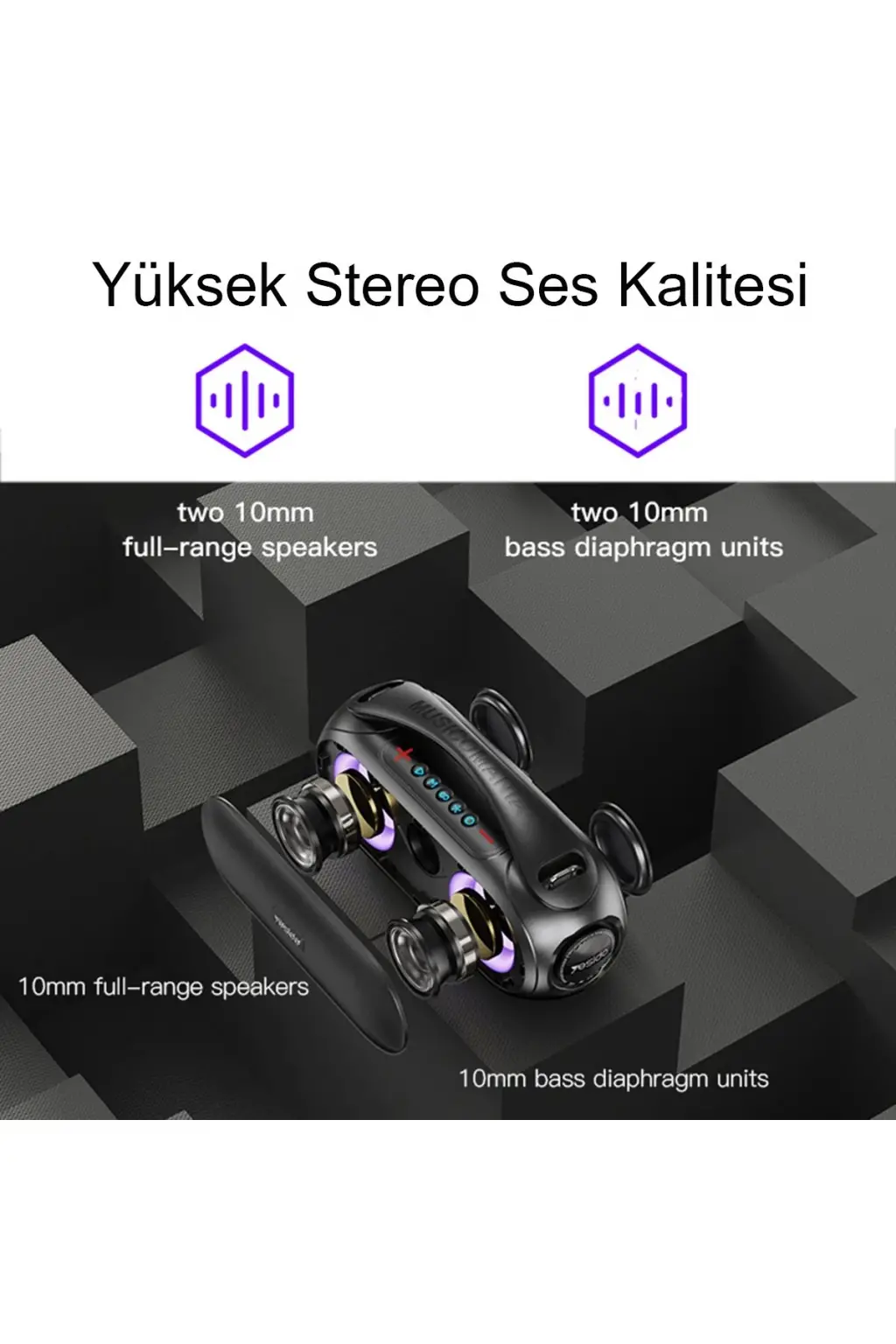 Hoparlörler, müziğin ritmine uyum sağlayan RGB ışık efektleri ile donatılmıştır. Farklı renklerdeki ışıklar, ortamınıza dinamik bir atmosfer katar ve müzik deneyiminizi daha etkileyici hale getirir. Bu özellik, özellikle gece kullanımları ve partiler için idealdir.